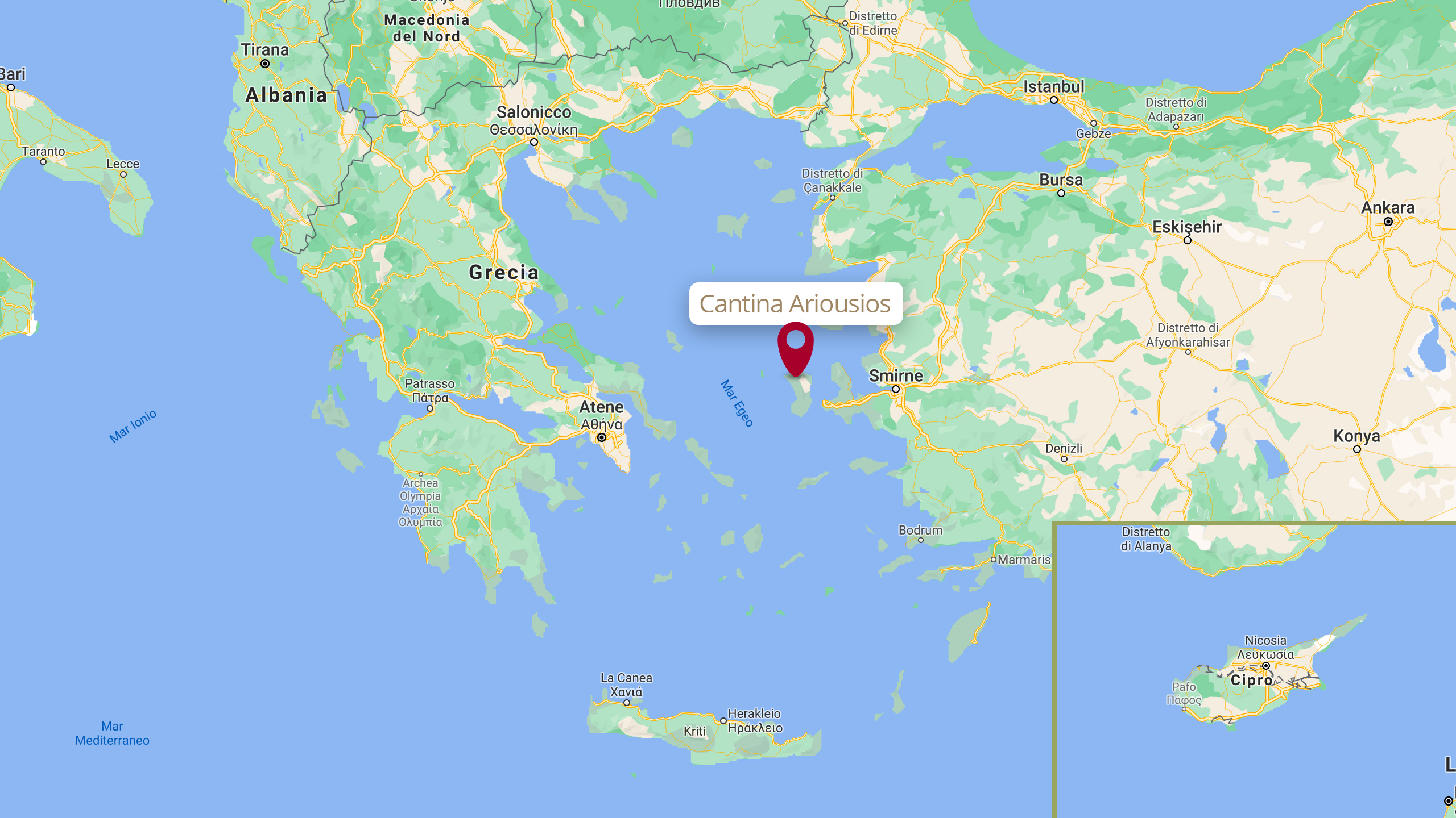 Vino raro di Chios dalle varietà autoctone Kraserò di Chios e Agiannitis. Prodotto nel “paese di Ariousios”, zona dell’isola identificata sin dall’antichità per la qualità delle uve e del vino (Strabone 1° sec. A.C. ed altri).