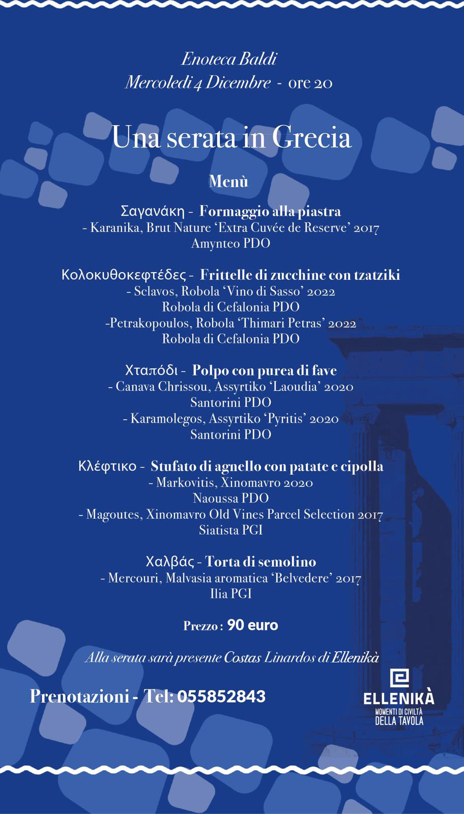 Una serata in Grecia – Mercoledì 4 dicembre 2024, presso Enoteca Baldi – Panzano in Chianti (FI) Vini in degustazione: